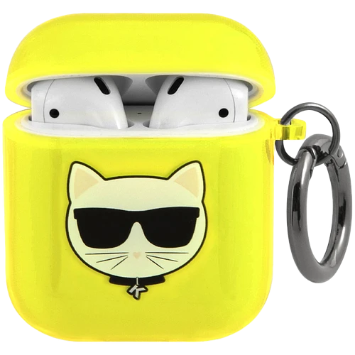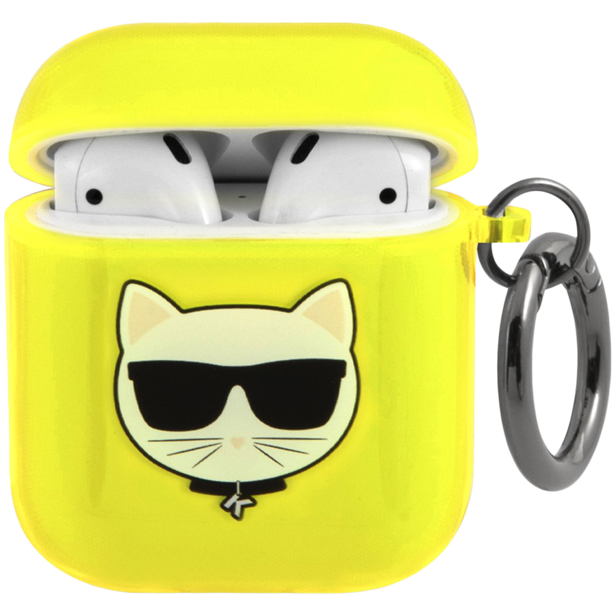Чехол Lagerfeld для Airpods 1/2 TPU FLUO with ring Choupette Transp Yellow