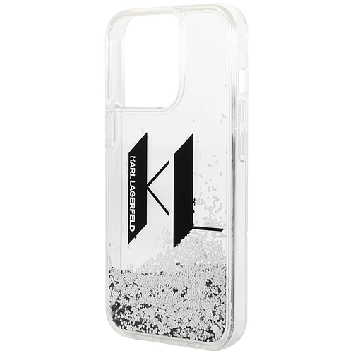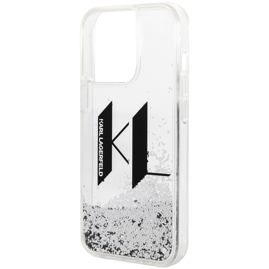 Lagerfeld для iPhone 14 Pro Max чехол Liquid Glitter Big KL logo Hard Silver