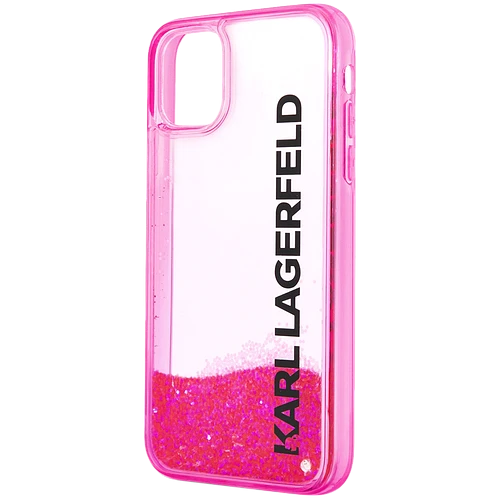 Lagerfeld для iPhone 11 чехол Liquid Glitter Elongated logo Hard Translucent pink