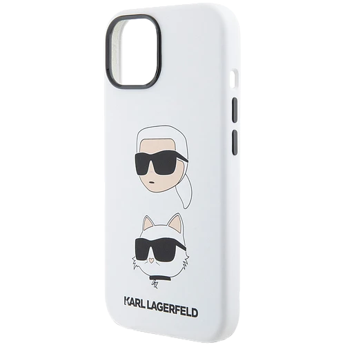 Lagerfeld для iPhone 15 чехол Liquid Silicone NFT Karl & Choupette heads Hard White