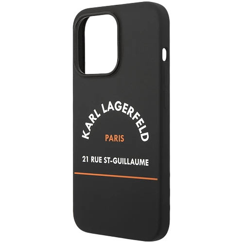 Lagerfeld для iPhone 14 Pro чехол Liquid silicone RSG logo Hard Black/Orange (MagSafe)