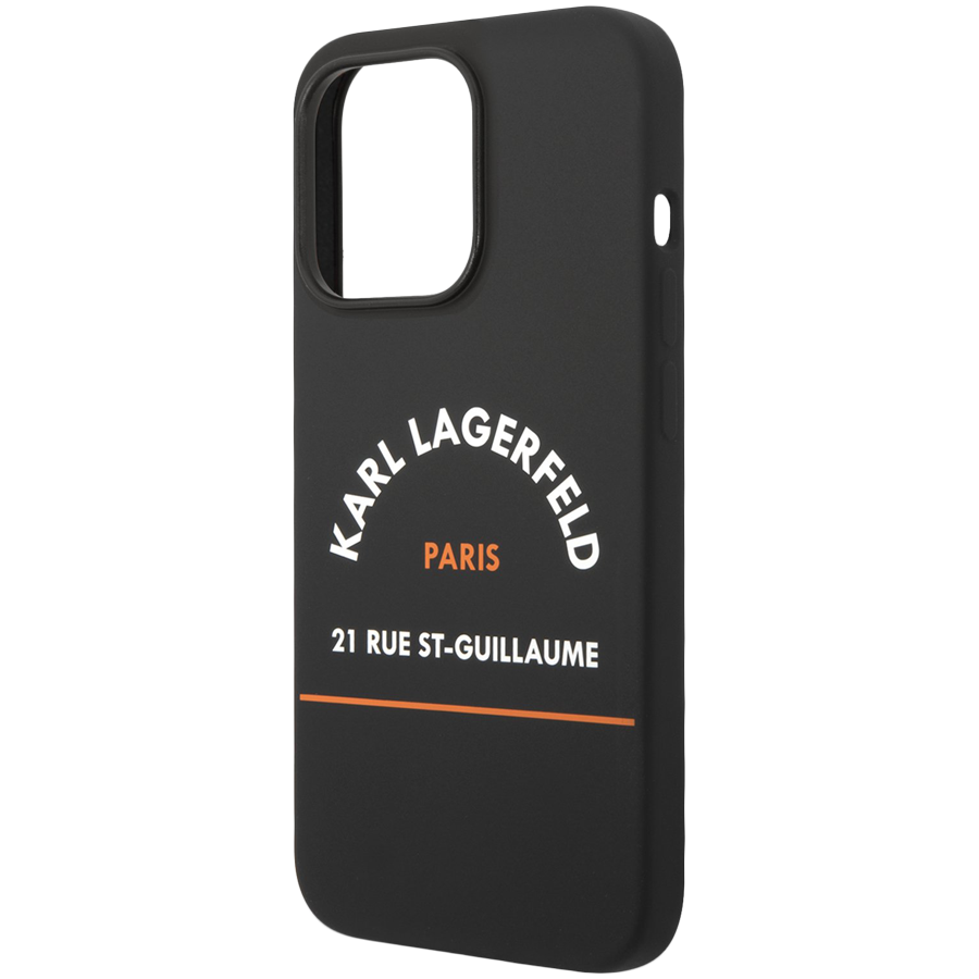 Характеристики Lagerfeld для iPhone 14 Pro чехол Liquid silicone RSG logo Hard Black/Orange (MagSafe)