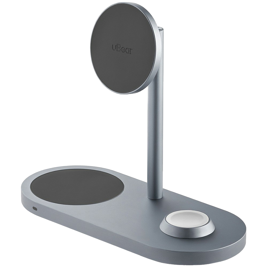 Беспроводное зарядное устройство uBear Stage Pro, 3-в-1, MagSafe совместимое, цвет: серый