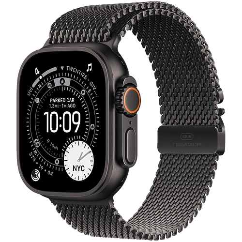 Apple Watch Ultra 3, GPS + Cellular, 49mm, Black Titanium Case with Black Titanium Milanese Loop - L