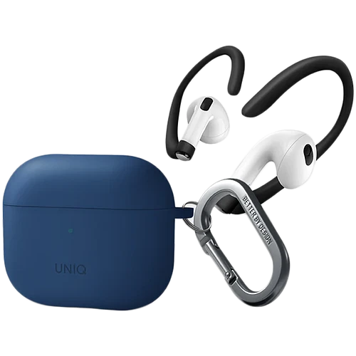Чехол Uniq для Airpods 3 NEXO Liquid silicone +carabin +Sports ear hooks Blue