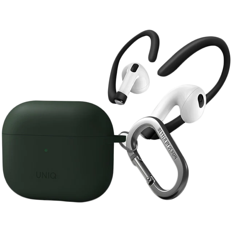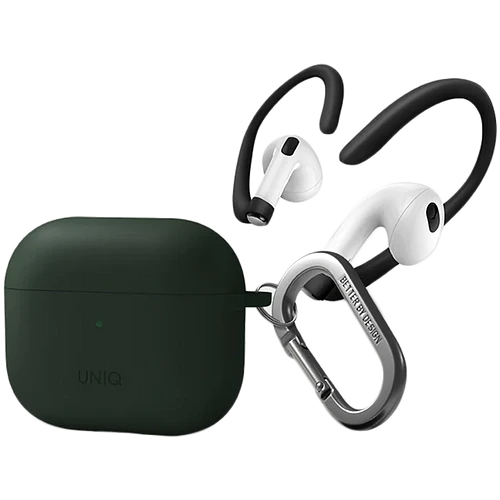 Чехол Uniq для Airpods 3 NEXO Liquid silicone +carabin +Sports ear hooks Green