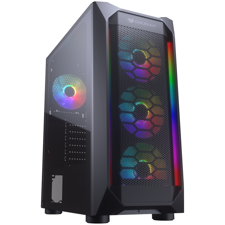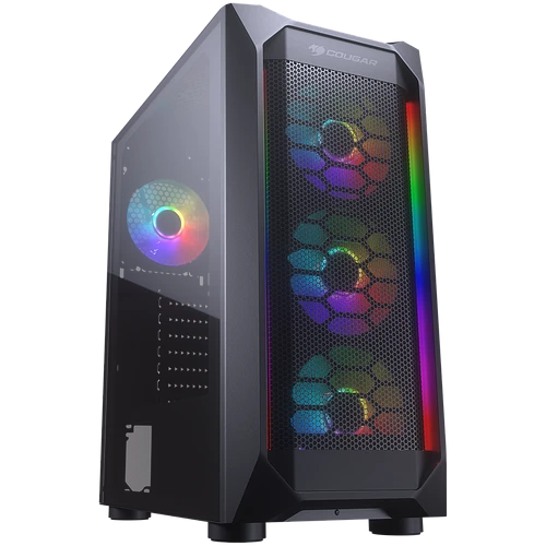 Корпус COUGAR GAMING Midi Tower, ATX, 7 слотов, USB 2.0, Аудио разъем, USB 3.0, Защитное антивандальное закаленное стекло, Power Button, Reset Button, Кнопка управления RGB, Светодиодный индикатор, PSU optional, Window, Поддержка системы жидкостного охла
